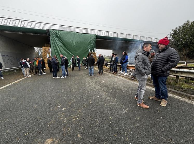 Depuis vendredi matin, un autre blocage est en cours à Lathus-Saint-Rémy, au rond point de la Grande Ferrière. Il est tenu par des éleveurs des alentours. Il devrait être levé dans l'après midi, après une opération escargot.