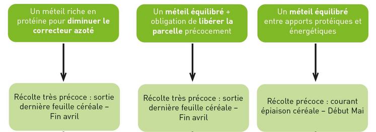Le stade de récolte d’un méteil est conditionné par le type d’animaux qui va le consommer, mais aussi par sa composition. Si la céréale peut servir de repère pour décider de la récolte, un méteil qui contient beaucoup de légumineuses pourra être récolté un peu plus tard.