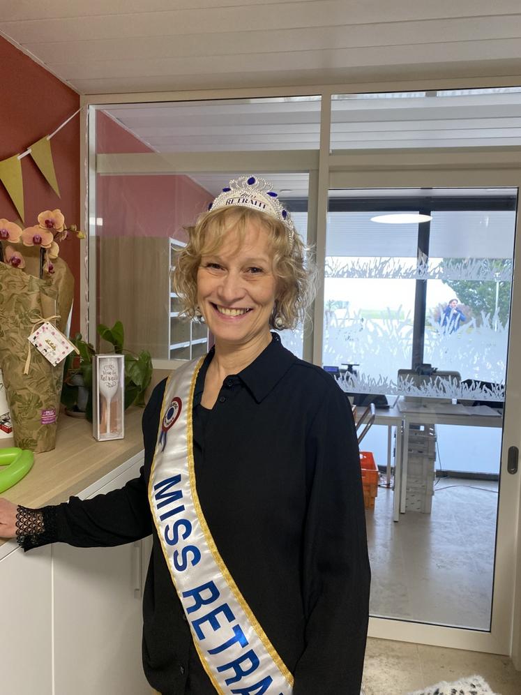 Le 7 février, lors de son tout dernier jour de présence aux Ruralies (Vouillé), des dizaines de collègues sont venues lui témoigner leur amitié, et l'ont pour l'occasion décorée de l'écharpe et de la tiare de "meilleure retraitée".