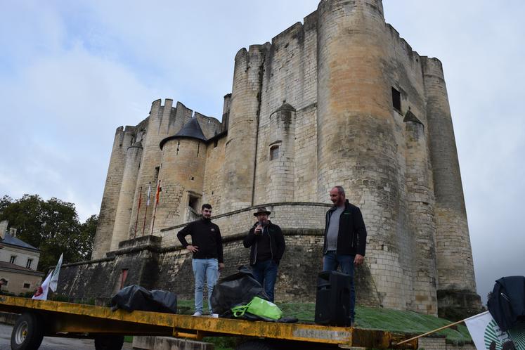 Une centaine d'agriculteurs se sont mobilisés, mercredi 25 octobre, pour rejoindre le centre-ville de Niort et manifester leur mécontentement au pied du Donjon, avec un convoi de quarante tracteurs.