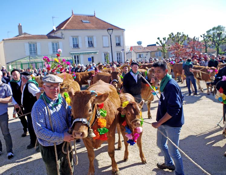 et 1500 repas à chaque édition, et ça ne diminue pas », souligne Florent Soleau, du Seurbli 17(*). Une cinquantaine de vaches, veaux et même des chevaux seront déplacés jusqu’aux prairies fertiles des marais, le long d’un parcours de sept kilomètres. La journée mobilise entre 150 et 200 bénévoles, qui ne sont pas tous issus du milieu agricole. « Ce sont des personnes impliquées dans des associations ou qui participent à la vie de leur village », déclare Paul Réjalot.