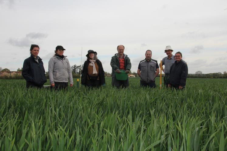Mardi matin, il y avait un peu de monde dans une parcelle de 29 ha en blé tendre d’hiver, appartenant à David Blot, agriculteur à Gizay, et engagé dans l’agriculture de conservation des sols depuis plus d’une quinzaine d’années, et adhérent et membre du Bureau de l’association Agrosol dans la Vienne. Pour chacun, la tête penchée vers le bas, l’heure était à l’inspection du sol. « On vient de faire des prélèvements pour caractériser les sols, avec des tests à la bêche », signale Clara Lefèvre. « On a fait des tests d’infiltration. On a aussi posé des « litter bags », des petits carrés de coton, pour que l’on puisse suivre la dégradation de la cellulose dans le sol. » La doctorante, de l'école nationale supérieure agronomique de Toulouse (Ensat), prépare une thèse sur les intérêts, ou non, d’un système utilisant l’agriculture de conservation des sols (*). « Les études agronomiques portent peu sur le système de l’agriculture de conservation uniquement.