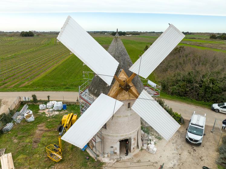 En sommeil depuis 1920, le moulin de La Brée-les-Bains va produire à nouveau de la farine. Son ouverture au public est prévue pour le printemps 2023. Le meunier, Didier Dauphin, transformera le blé local pour des boulangers de l’île.
