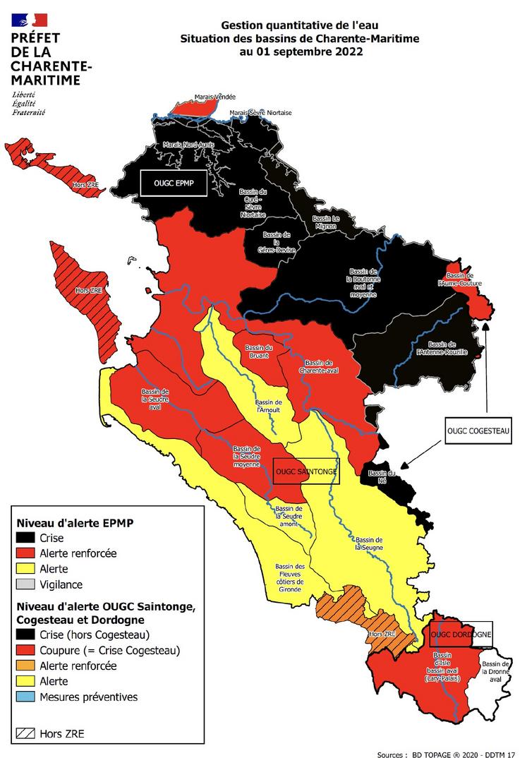 Le préfet de la Charente-Maritime a revu en cette fin d'été les mesures de restriction d'usage de l'eau.