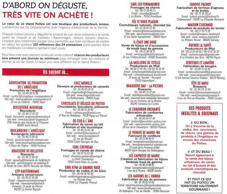 24 entreprises ont été invitées cette année (voir la liste complète sur le site Internet du journal). Forte de plus de 200 partenaires, la marque Poitou « permet de remettre à l'honneur le travail des exploitants et d'assurer une identité forte », selon Gilbert Favreau et Jean-Olivier Geoffroy, les représentants politiques des deux départements.