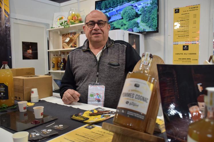 Après quinze ans d’absence, Éric Gargouil, producteur de pommes à Charroux, a fait son retour sur le salon de l’agriculture pour cette édition 2023. Il a sorti pour l’occasion une nouveauté : le Pommes-Cognac. Première boisson alcoolisée de la marque, elle assemble les notes fruitées de la pomme avec celles subtiles du Cognac. « La Maison Léonard fournit le Cognac. Nous vendons nos produits dans la même boutique depuis des années, c’était naturel de me tourner vers eux. J’ai conçu le produit fin 2022, il a fallu mener beaucoup de démarches pour sortir les bouteilles pour l'évènement. » Cette gamme va permettre à Éric Gargouil de chercher de nouveaux clients, notamment chez les cavistes.