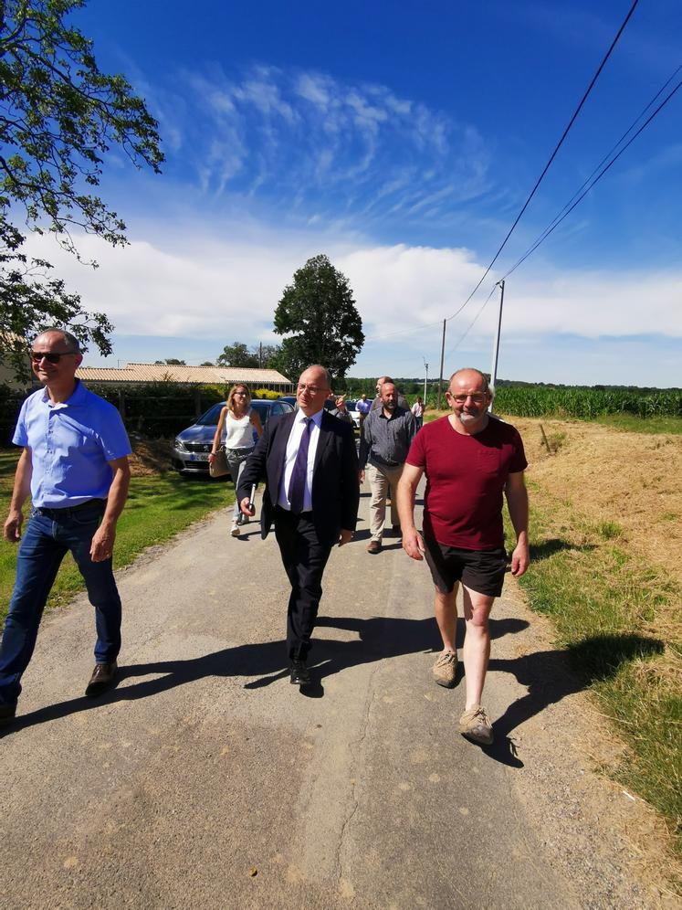 Mercredi 8 juillet, Alexis Baillargeau (à gauche) a accueilli sur son exploitation avicole de Secondigny une délégation composée, entre autres, de représentants de la Fnsea et de JA 79, de la chambre d’agriculture, de la Ciab, de la DDT et de la préfecture. Emmanuel Aubry, le préfet des Deux-Sèvres (à droite) est venu prendre le pouls d’une filière en demi-teinte, alors que les produits comme le canard ou le pigeon sont en grande difficulté et que le poulet standard se porte plutôt bien.