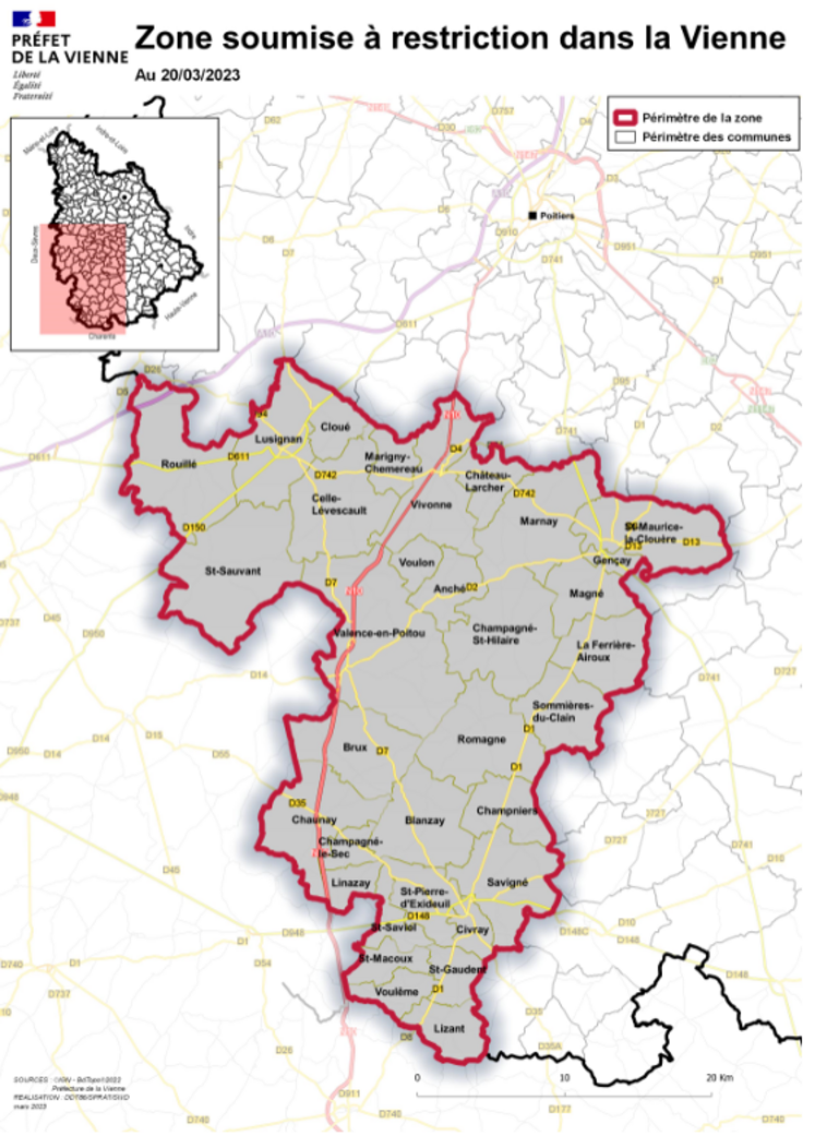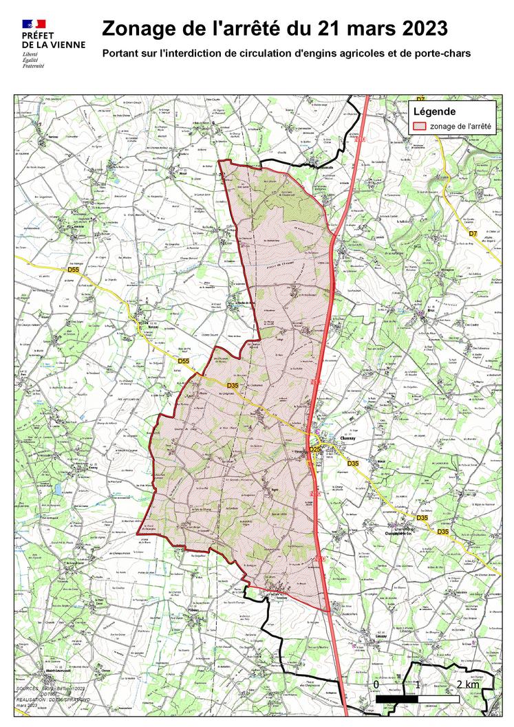 En prévision des manifestations prévues ce week-end dans les Deux-Sèvres par Bassines non merci, Les Soulèvements de la Terre et la Confédération Paysanne, le Préfet de la Vienne a pris ce vendredi 24 mars un arrêté interdisant la circulation d'engins agricoles (à l'exception de ceux destinés aux travaux agricoles organisés sur des exploitations riveraines et pouvant le justifier) sur les communes de Chaunay et Brux jusqu'à dimanche soir.