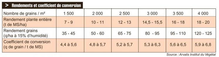 Il est nécessaire de prendre en compte le rendement grain ; en effet, le nombre de quintaux de grains augmente plus vite que le tonnage des tiges et feuilles quand les rendements s'accroissent. Cependant ce coefficient d'équivalence baisse pour des semis tardifs et des conditions de végétation perturbées (sécheresse, froid) et la valeur alimentaire dans ce cas sera inférieure. Il ne faut pas acheter une parcelle mais un tonnage.