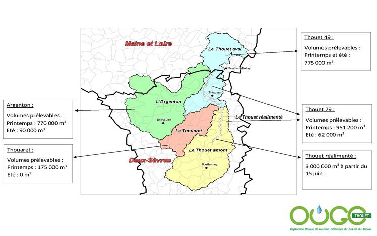 Le bassin du Thouet-Thouaret-Argenton (TTA) est classé en zone de répartition en eaux (ZRE) depuis 1994, ce qui caractérise un déséquilibre entre les ressources en eau et les besoins du territoire. Pour faire face à ce déséquilibre et atteindre le bon équilibre quantitatif, la loi sur l'eau et les milieux aquatiques du 30 décembre 2006 impose la réalisation d'étude d'estimation de volumes prélevables et la création d'un organisme unique de gestion collective (OUGC) pour répartir équitablement l'eau destinée à l'irrigation.