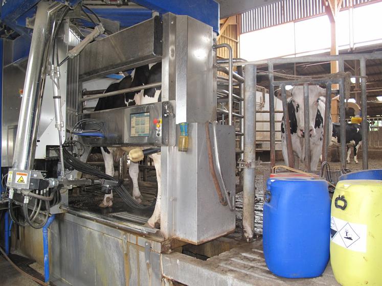 Obtenir un lait de qualité passe par l’entretien quotidien du robot de traite. Tous les jours, il faut nettoyer le bras de traite, vérifier les consommables (désinfectant, post-trempage, manchons…) et observer la traite complète de plusieurs vaches.