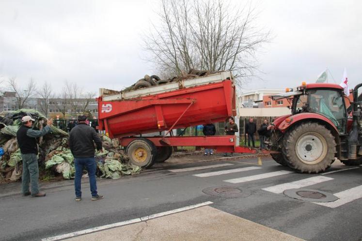 L’expression de la colère des agriculteurs s’était faite entendre dès dimanche soir. Ils avaient déversé des remorques de fumier devant les permanences du député Nicolas Turquois à Châtellerault et à Loudun, devant celle du député Jean-Michel Clément à Gençay, mais aussi devant la trésorerie de la commune. Un passage à l’offensive de la FNSEA 86 et des JA de la Vienne pour appeler les députés à tenir leurs engagements de compensation de la suppression du CICE et à̀ revenir au dispositif adopté au Sénat, lors de l’examen du projet de loi de financement de la Sécurité́ sociale (PLFSS) la semaine prochaine.