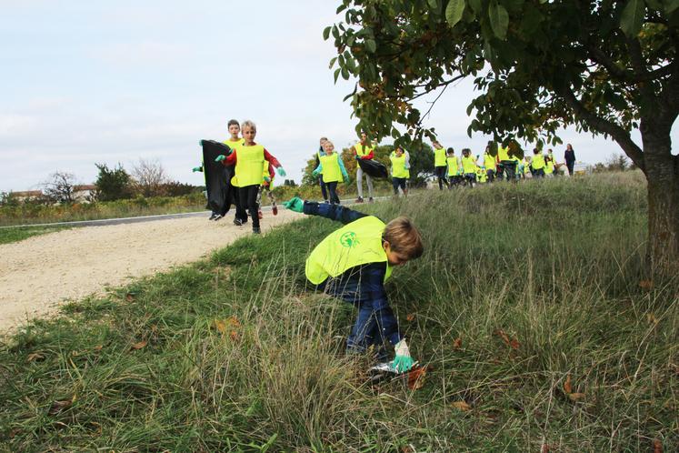 Lundi dernier, en début d’après-midi, 56 enfants de CP, CE1 et de CM1 et CM2, de l’école Notre-Dame de Saint-Georges-Lès-Baillargeaux ont revêtu une chasuble jaune, enfilé des gants, et se sont munis de grandes poches poubelles. Leur mission : partir dans les chemins qui bordent les champs tout proches, accompagnés de leurs enseignants, d’agriculteurs et techniciens de La Tricherie. La coopérative est à l’origine de l’opération, en partenariat avec la filière CRC (Culture raisonnée contrôlée), dans laquelle elle est engagée. Des pratiques agricoles favorables à la biodiversité des agriculteurs coopérateurs, à la sensibilisation au respect de l’environnement, il n’y a qu’un pas que la coop n’a pas hésité à franchir. À peine en route, le groupe d’écoliers n’a pas tardé à se pencher sur les bords des parcelles qu’ils longeaient. Ici du papier d’aluminium, plus loin des mégots, des morceaux de verre, ou encore des emballages cartonnés venant d’une enseigne de restauration rapide.