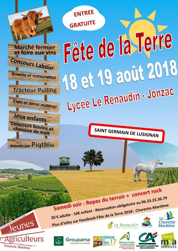 Les 18 et 19 août, à Jonzac, au lycée Le Renaudin, se déroulera la fête de la Terre des jeunes agriculteurs.