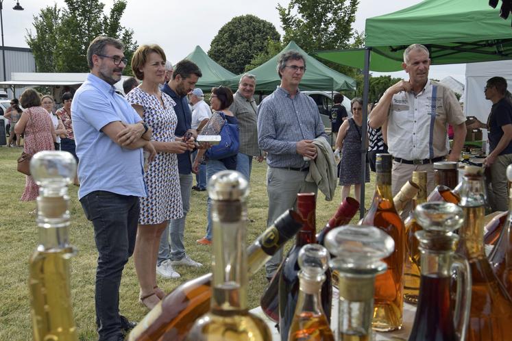 Les partenaires de la Chambre d’agriculture ont découvert les différents stands et les productions principales du département. Christian Daniau salue le travail du maraîcher, « une activité compliquée, qui demande beaucoup d’investissement, qu’on a intérêt à soutenir ». Il glisse aussi un mot aux Ruchers de l’Argentor, s’excusant de la diminution des cultures de colza cette année, « Cela complique la production des ruchers. Promis, nous ferons mieux l’an prochain… ». Didier Destrait, éleveur à Chasseneuil-sur-Bonnieure, président de la fédération de Groupama, rappelle le soutien du groupe mutualiste aux agriculteurs. Guillaume Chamouleau, céréalier à Cellefrouin, vice-président de la Chambre d'agriculture, fait la promotion de la marque #aimetonagri. Mickael Laville, maire de Champniers (commune où la saison des marchés sera clôturée le jeudi 31 août), président du service de collecte et traitement des déchets de la Charente Calitom, partenaire depuis 15 ans des marchés de pays, a présenté la barquette alu éco-responsable, dont 13 000 exemplaires ont été produits pour distribuer aux consommateurs des marchés qui souhaitent rapporter leur repas chez eux. L’office de tourisme de la communauté de communes de La Rochefoucauld-Porte du Périgord était aussi de la partie pour promouvoir le patrimoine local.