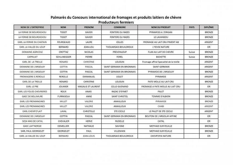 Les médaillés du concours de fromages de chèvre à Capr'Inov