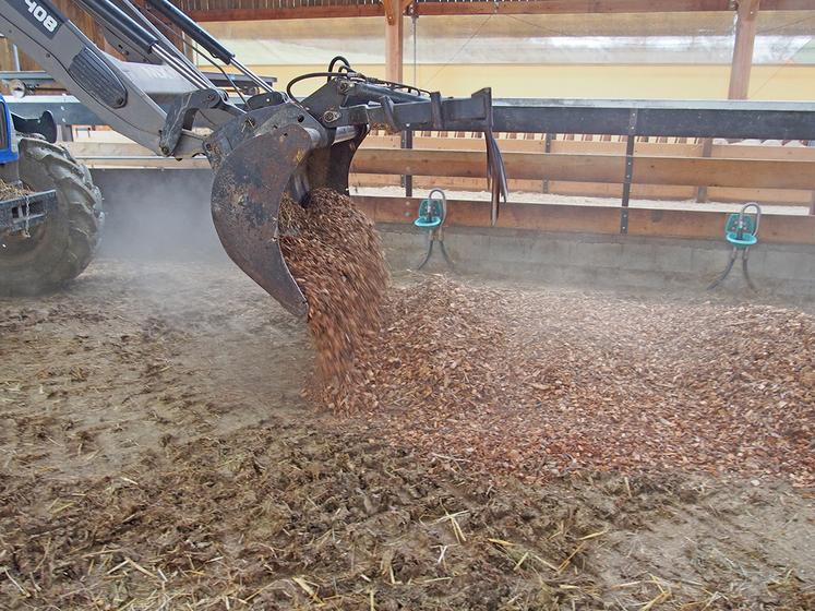 Si la paille doit constituer une part de la ration des brebis cet hiver par manque de foin, il est possible de la remplacer en litière par une autre matière première, partiellement ou totalement. C’est le cas par exemple des plaquettes de bois. Leur prix d’intérêt est de l’ordre de 9,5 € le MAP (équivalent d’un m³ de plaquettes) pour un prix de la paille à 100 € la tonne par exemple. Cela signifie qu’en dessous de ce prix, les plaquettes sont plus intéressantes que la paille. Toutefois, pour obtenir les mêmes résultats techniques et maintenir le bien-être des animaux, les plaquettes de bois doivent impérativement afficher un taux de matière sèche de 80 % minimum lors de leur utilisation.