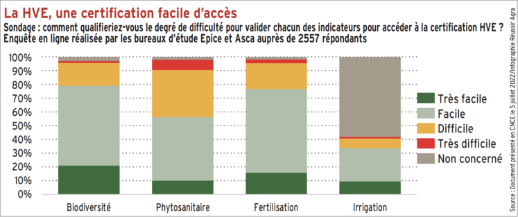 Selon une enquête en ligne, à laquelle près de 2 557 agriculteurs ont répondu, l’obtention de la haute valeur environnementale (HVE) était assez facile avec l’ancien référentiel.