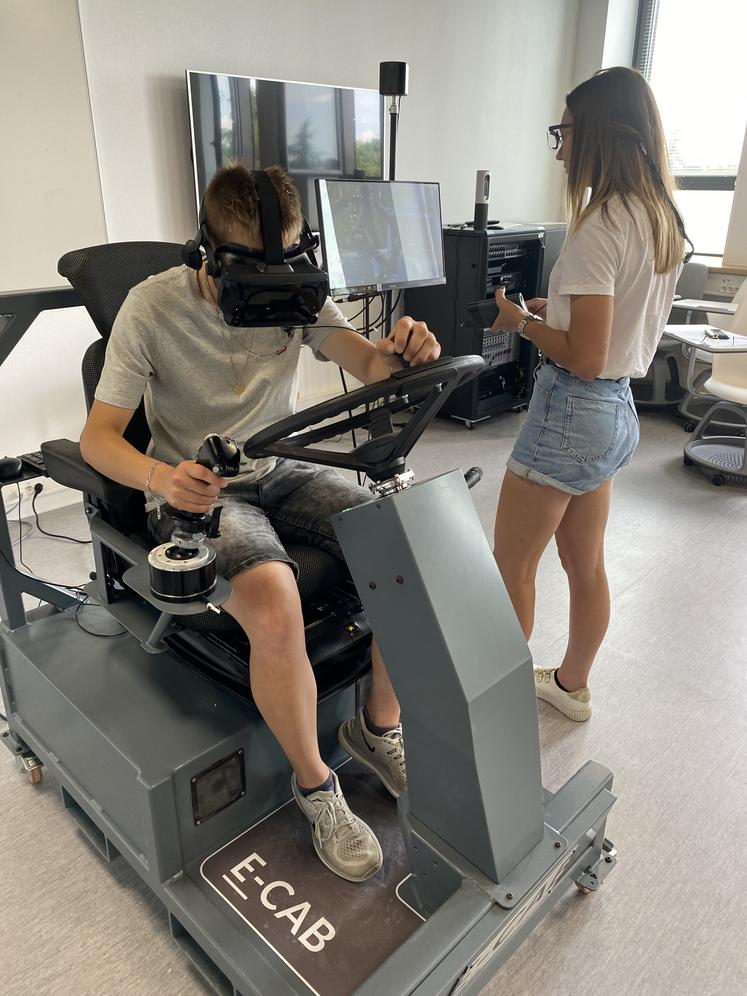20 agents du laboratoire Techné*, basé à l'Université de Poitiers, par le biais du projet Vinum, qui analyse les usages de simulateurs dans la viticulture. Trois appareils sont ainsi étudiés : E-Cab, qui permet de se former à la vendange ; Ampélos, pour la taille de la vigne; et E-Maint. Ce dernier simulateur, qui n'est pas encore opérationnel, permettra de s'entraîner à la maintenance des engins agricoles. Le travail du laboratoire dans Vinum est à la fois de tester ces outils pour les améliorer, mais aussi d'observer comment ils sont utilisés par les élèves et leurs formateurs, pour ensuite donner des conseils sur les méthodes de formation à utiliser. "Toute l'expertise des professionnels de la viticulture ne peut pas être embarquée. Il nous faut donc voir quelle est la meilleure conduite de séance à mettre en place par un enseignant pour obtenir le meilleur résultat" explique Jean-François Cerisier, professeur à l'Université de Poitiers et directeur du laboratoire. Et pour y arriver, la structure dispose d'une salle dédiée, où chaque simulateur peut être utilisé sous l'œil des chercheurs, mais aussi sous l'observation de nombreux capteurs : caméras, détecteurs de l'activité numérique, spaciale et sonore, et même via des lunettes d'eye-tracking. De ces tonnes d'enregistrements, il faut ensuite extraire des informations utilisables. "Une partie de ce traitement est automatisée, mais on part souvent de nos propres impressions en direct". Des exercices qui se font à la fois avec des viticulteurs et des élèves de différents lycées agricoles de la région. Même s'il reste encore 2 années entières de travail, de nombreuses évolutions ont déjà été réalisées. "Par exemple, pour le simulateur de taille de vigne, j'imaginais que la précision de l'image que visualise la personne dans le simulateur n'était pas très importante. En fait, il faut que la texture et la couleur soient très précises".