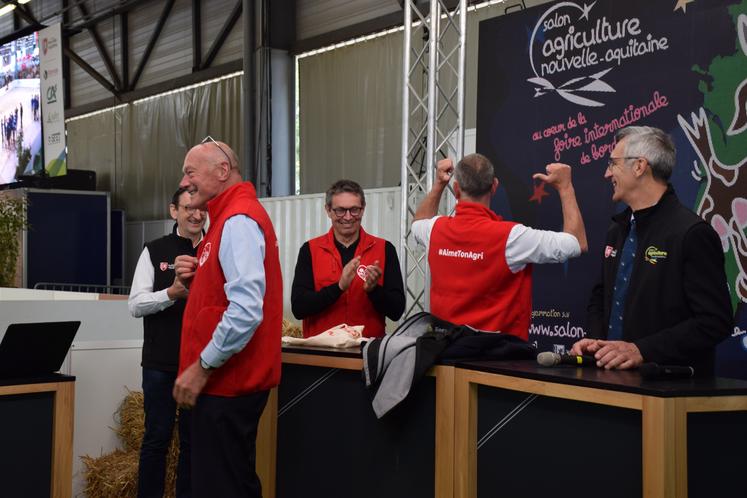 Lors de la journée des élus, le 15 mai, au salon de l’agriculture Nouvelle-Aquitaine, Alain Rousset a tombé la chemise face caméra avant d’enfiler la veste #AimeTonAgri tendue par le président de la chambre d’agriculture de la Charente, Christian Daniau. Ce dernier a témoigné de la portée de ce message, diffusé depuis quelques années en Charente puis en Dordogne. « Nous communiquons auprès du grand public lors de salons comme celui-ci. À partir d’un questionnaire sur les idées reçues, nous avons de longs échanges avec des personnes et des prises de conscience se font », souligne Christian Daniau. Son intervention a succédé à celle du président de la chambre d’agriculture régionale, Luc Servant, qui a annoncé la nouvelle stratégie de communication collective de la filière agricole.