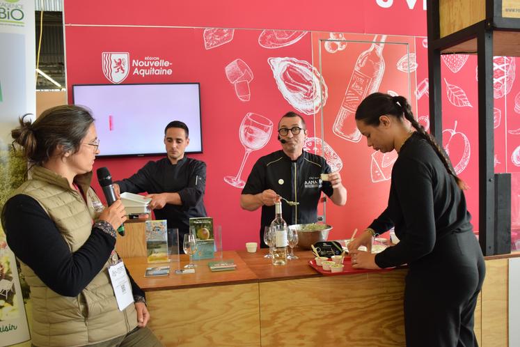Pendant ce temps, les gagnants du concours des Ardoises de Nouvelle-Aquitaine, organisé par la région et Interbev, préparaient leur recette originale de tartare de bœuf, de veau ou d’agneau. L’après-midi, c’était au tour du Chef Jésus (photo) de concocter un tartare de poissons aux légumes bio, « une tuerie » d’après les visiteurs sur place !