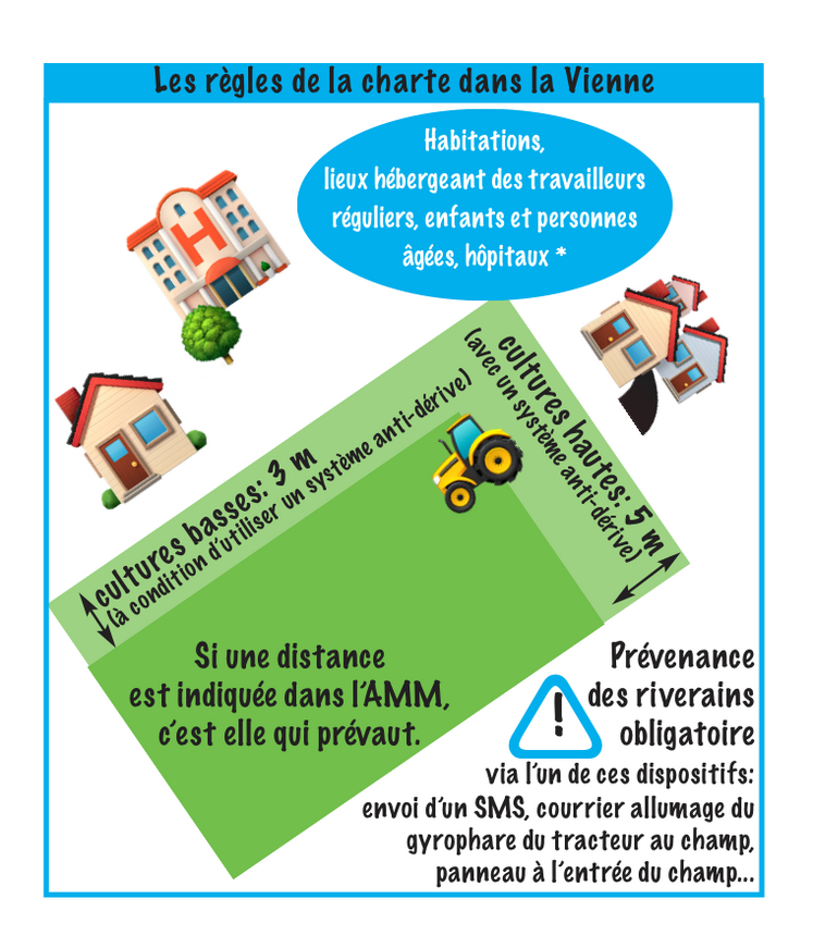 * Il est possible de consulter cette charte dans son intégralité, avec le détail des lieux concernés sur le site internet de la préfecture: https://www.vienne.gouv.fr/Politiques-publiques/Agriculture-foret-et-developpement-rural/Qualite-de-la-ressource-en-eau/Phytosanitaires/Charte-d-engagement-departementale-des-utilisateurs-agricoles-de-produits-phytosanitaires