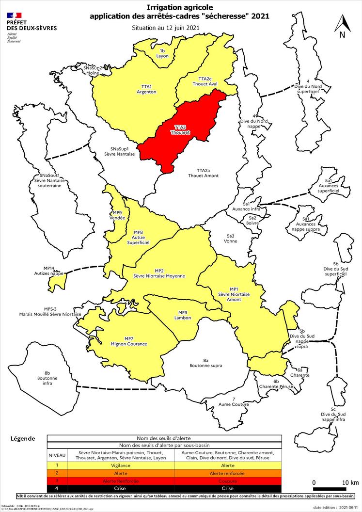 Le débit de l'Argenton à Massais est au-dessus du niveau d’alerte renforcée et donc la mesure d'interdiction de prélèvement doit être levée.