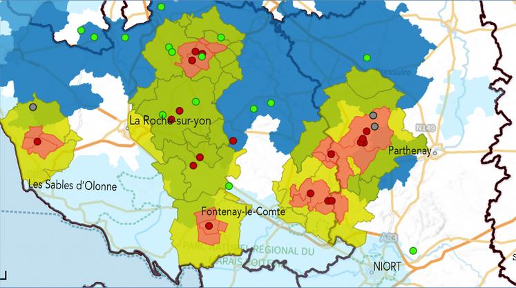 Cinq foyers avérés à Largeasse ayant déjà conduit à des dépeuplements préventifs dans un rayon d’un kilomètre, un cas à La Chapelle-Saint-Laurent, des foyers sporadiques dans d’autres départements…