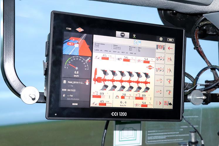 Le terminal Isobus s’utilise généralement pour gérer d’autres paramètres, tels que le réglage de l’aplomb, la largeur retournée par le premier corps (déport), la profondeur de labour et la pression de déclenchement des sécurités non-stop hydrauliques. À l’instar de Lemken, les données peuvent parfois être enregistrées pour différents utilisateurs ou selon le type de labour (dressé, jeté...), afin de les retrouver lors des chantiers suivants. La fonction marquage de la charrue Kverneland I-Plough permet de tracer une ligne délimitant la fourrière, afin de relever au bon moment. Le retournement automatique en bout de champ, proposé par Kuhn sur sa charrue Varimaster L Smart-ploughing, simplifie les manœuvres. Le chauffeur actionne uniquement la montée du relevage et le retourne-ment s’effectue dès que la hauteur programmée est atteinte. Il est alors libéré de cette tâche répétitive et peut se concentrer pleinement sur la réalisation du demi-tour.