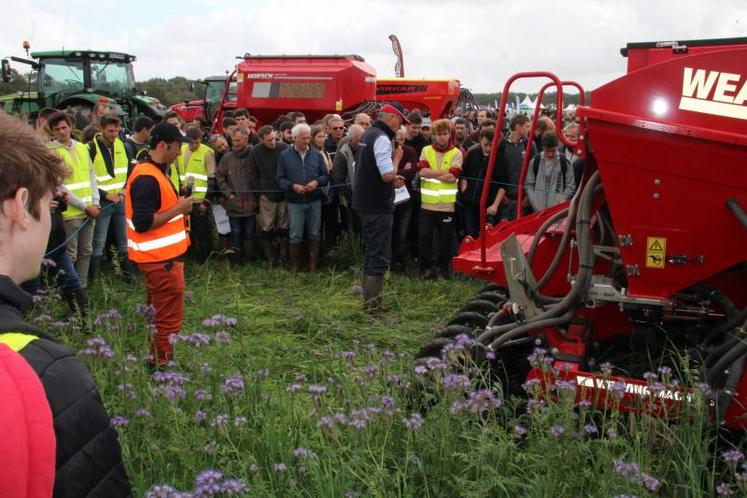 Dès le matin, il y avait foule devant la démonstration des 8 semoirs testés grandeur nature. Les visiteurs, comme Franck Michaud, céréalier à Ingrandes, étaient en quête de conseils pour se lancer dans les couverts végétaux ou pour mieux maîtriser cette pratique.