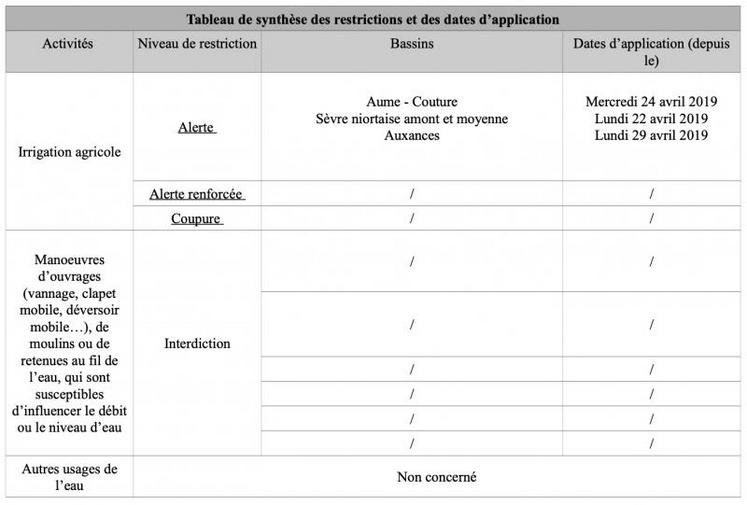 D'autres mesures pourront être prises sur les bassins deux-sévriens, au vu de l'évolution de la situation.