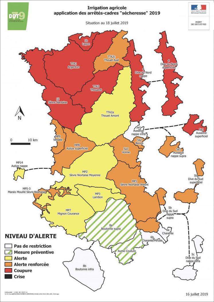 Les arrêtés, la carte des restrictions et les bulletins d'étiage sont en ligne sur le site Internet des services de l'Etat : http://www.deux-sevres.gouv.fr/