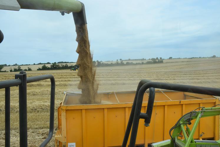 Si les récoltes suivent leur cours, le marché tourne au ralenti, avec des grains bloqués dans les ports, suite à une demande à l'export faible sur les céréales françaises, concurrencées par celles de la Mer noire. " Notre niveau de stock augmente, témoigne Gilles Monaury, d'autant que les agriculteurs ne vendent pas actuellement face aux cours bas (au 12 juillet : blé tendre 225 €/tonne, orge 213 €, colza 457 €). Cette situation, qui n'est pas inédite, traîne en longueur cette année et nous inquiète un peu ", concède le directeur. " Il faudrait que le marché se fluidifie pour qu'on puisse engager nos volumes ", espère Matthieu Guiho. Le débouché export de la coop représente les deux tiers de la collecte, le reste étant réservé pour les meuniers locaux avec des cahiers des charges qualité.