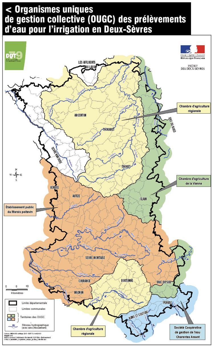 La loi sur l’eau et les milieux aquatiques de 2006 a instauré une gestion collective de l’eau en agriculture en créant des organismes uniques de gestion collective (OUGC) dans les secteurs en tension quantitative (zones désignées comme zones de répartition des eaux). Ces organismes détiennent une autorisation unique de prélèvement sur leur périmètre et sont chargés de répartir le volume correspondant, et de le gérer pendant la campagne d’irrigation.