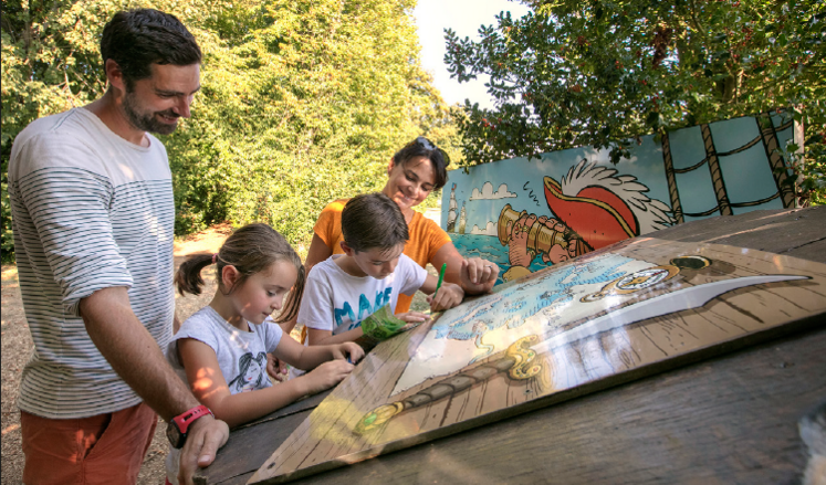 Avant de partir à l’abordage, il faut se saisir de son arme secrète : le Pass’Énigmes, remis à l’accueil du site. C’est dans ce petit carnet de bord qu’il faudra noter, pas à pas, les indices recueillis au cours d’un périple de 2 à 3 heures débuté dans le parc du Château des Énigmes.