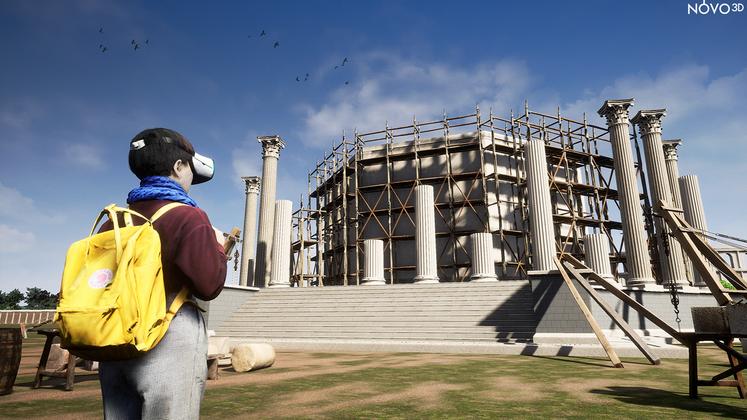 Équipé d’un casque et de deux manettes, vous voici spectateur de la construction du temple ; acteur en déambulant près du bois sacré dans le sanctuaire et au cœur du temple ; ou lecteur d’une tablette en pierre… si vous parlez latin !