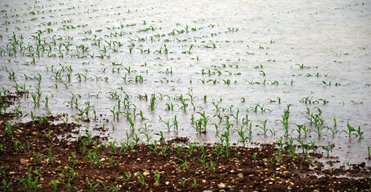 Concernant les maïs, l’excès d’eau est comparable à une sécheresse, la culture n’est plus en mesure d’assurer ses échanges respiratoires et s’asphyxie. Le pronostic est fonction de la durée de l’ennoiement et du stade de la culture : au-delà de 48 h de submersion totale, les chances de reprise de la culture sont infimes, notamment pour les maïs les plus jeunes (levée à 2-3 feuilles), qui peuvent dépérir rapidement.