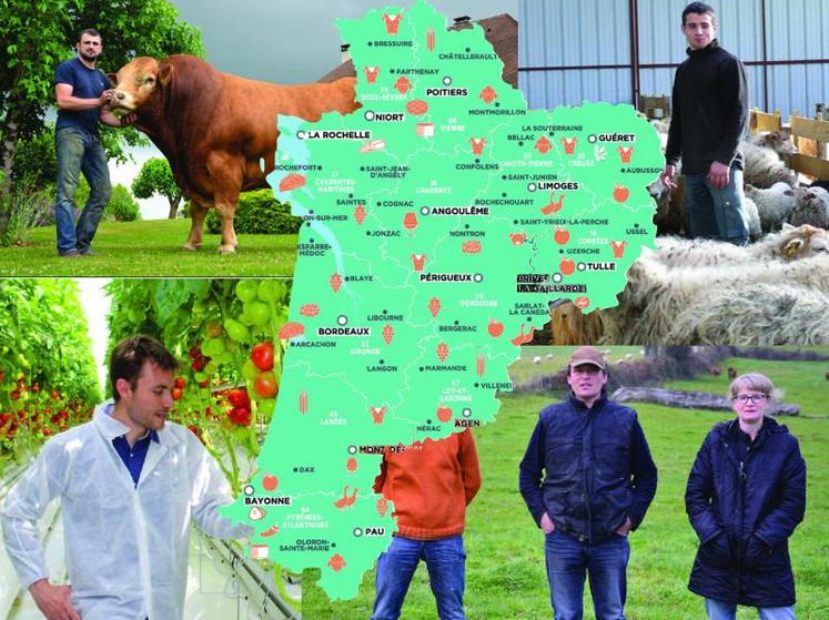 Tour d'horizon des nombreuses productions agricoles représentées dans la nouvelle région Aquitaine, Limousin, Poitou-Charentes qui totalise 85 000 exploitations. Cette agriculture régionale génère un chiffre d'affaires de 9,4 milliards et représente plus de 180 000 emplois tant dans l'agriculture que dans l'agroalimentaire.