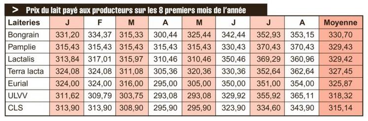 Pour la région, les prix que les producteurs sont en droit d’attendre de leurs entreprises pour les quatre derniers mois de l’année sont renseignés dans le tableau ci-dessus. Il sera possible grâce à cet outil de vérifier à l’heure du bilan de fin d’année, si les entreprises respectent ces revendications.