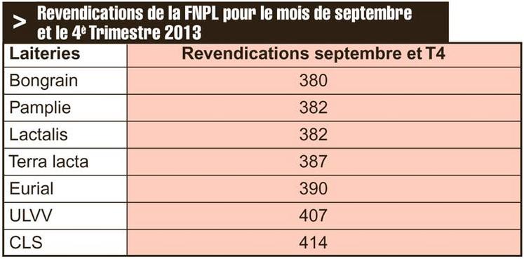 La conjoncture est très positive depuis l’été et restera au vert jusqu’à la fin de l’année. La valorisation “beurre poudre” en témoigne puisque celle de septembre s’établit à 415,70 €/1 000 l et celle du dernier trimestre 2013 à 401,44 €/1 000 l. Aussi, « les entreprises ont la capacité à atteindre nos revendications de prix », souligne Christophe Limoges. Celui-ci exhorte « chaque éleveur à demander des comptes à sa laiterie ».
