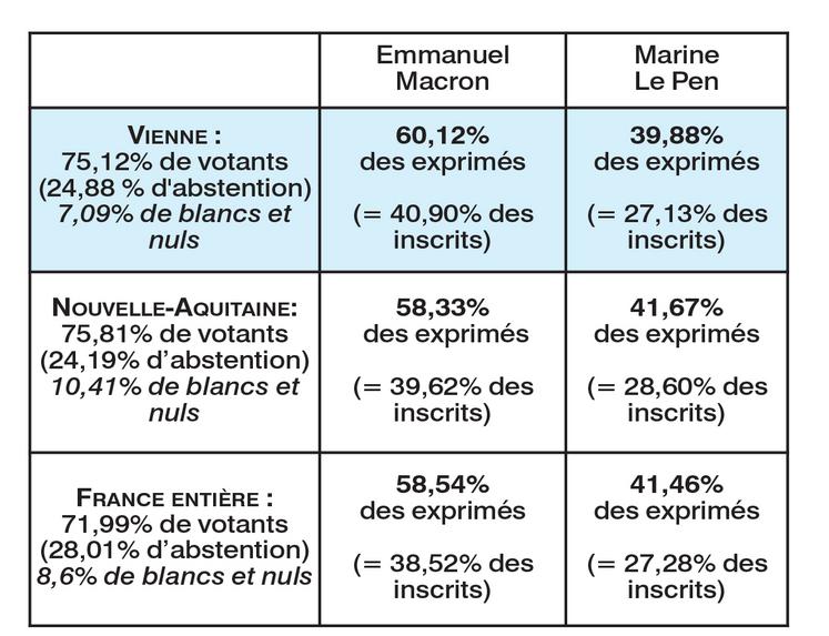 Comme au premier tour, la Vienne s’est un peu plus mobilisée que le reste de l’hexagone pour l’élection présidentielle, et a plus largement voté pour Emmanuel Macron.