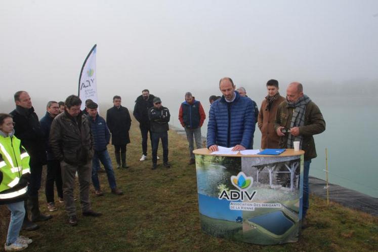 Responsables d’organisations professionnelles, de coopératives, de négoces, élus. Ils étaient nombreux, lundi matin, au milieu de la brume matinale accrochée à la réserve de substitution de l’Asa des Dames, à Nouaillé Maupertuis. Ils étaient venus soutenir l’association départementale des irrigants de la Vienne (Adiv) et Réseau Clain, inquiets de la non signature par la Chambre d’agriculture et Grand Poitiers du protocole d’accord sur le bassin du Clain, qui prévoit la création de 30 retenues d’eau.