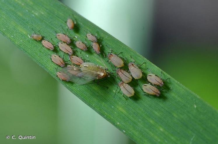 Plusieurs espèces de pucerons sont souvent observées actuellement sur les feuilles des céréales en cours de montaison dans la région.