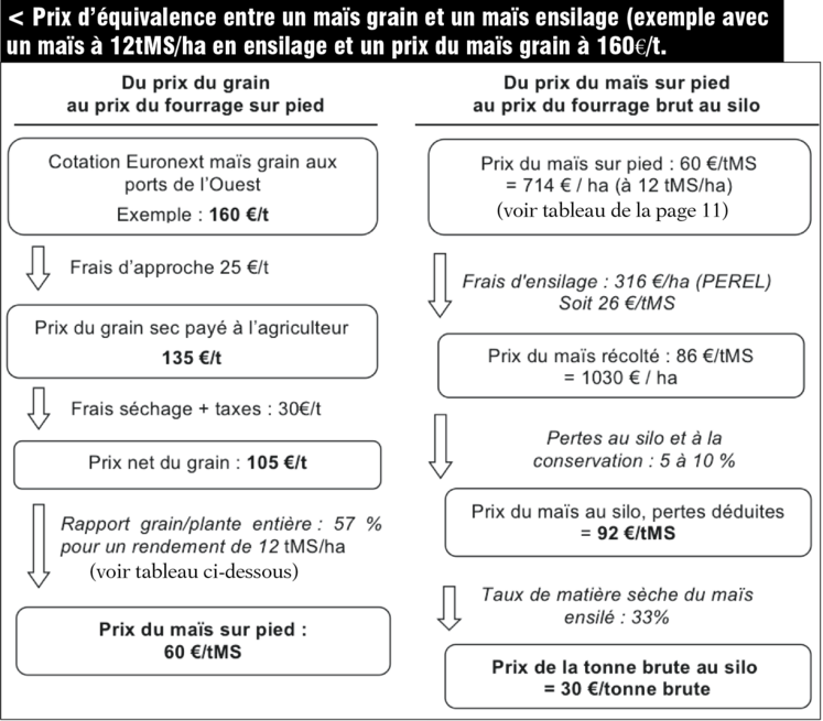 Les prix de vente du maïs ensilage obtenus s’appuient sur une hypothèse de prix futur du maïs grain.