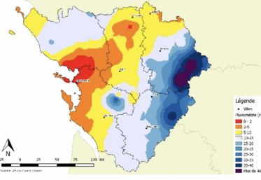 Le niveau de la nappe mesuré à la station piézométrique du Bourdet a dépassé la valeur de -3 mètres le 6…