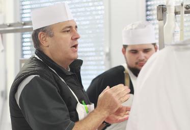 Formateur-boucher, David Russeil, tout juste champion d’Europe des produits tripiers, enseigne aux apprentis…