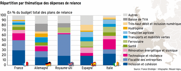 À l’instar de la France, qui a consacré 1 % de son Plan de relance à l’agriculture, trois de ses principaux pays voisins (Espagne, Allemagne, Italie) ont également ciblé le secteur, selon un rapport de l’Inspection générale des finances paru en octobre.