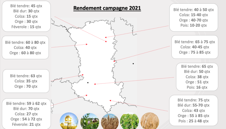 « On s’attendait à pire » conviennent les participants (peu nombreux, beaucoup étant encore sur le front, profitant des moindres fenêtres météo pour ces moissons tardives) à la réunion des organismes stockeurs à la maison de l’agriculture ce 30 juillet. Les moissons 2021, casse-tête à organiser entre les gouttes, auront dans l’ensemble produit des résultats satisfaisants en Deux-Sèvres (cf photo). Présent à la réunion, Dominique Jean, responsable grandes cultures à la Draaf Nouvelle-Aquitaine a présenté les chiffres d’une sole régionale de 505000 ha cette année, contre les 358000 de l’année 2020 atypique, où les semis avaient été catastrophique. En somme, 2021 revient à des standards plus connus.