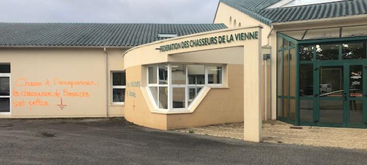 Dans la nuit de jeudi 28 à vendredi 29 septembre, des membres du mouvement "Les Soulèvements de la Terre" sont venus taguer la façade et les murs du bâtiment de la Fédération des chasseurs de la Vienne, sur le site d'Agropôle, à Mignaloux-Beauvoir dans la Vienne. Ce matin s'y déroule l'assemblée générale de Rés'Eau Clain, une des associations d'irrigants porteuses du projet de réserves substitution sur le Clain. Ce matin, son président, Bertrand Lamarche se dit "écoeuré par ces méthodes. Je suis pour le dialogue. Ils n'ont pas le courage de venir nous parler!". Une manifestation de ces mêmes opposants aux réserves de substitution est annoncée dans la matinée. Les forces de l'ordre sont sur le site pour sécuriser les différents bâtiments, notamment celui de la chambre d'agriculture.