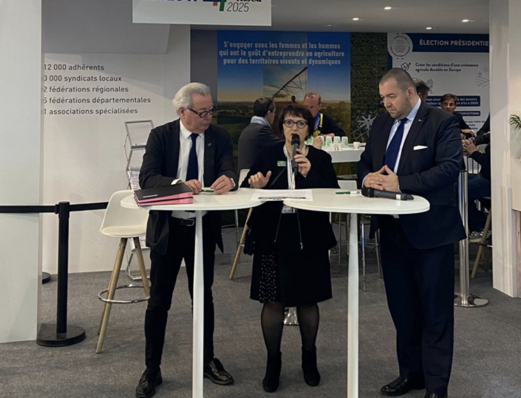 Plus tôt dans la journée, la Fnsea organisait une conférence de presse sur les approvisionnements de la restauration collective. Le syndicat appelle à « mettre les moyens » pour augmenter la part des produits français et atteindre les objectifs d’Egalim 1 (50% de produits de qualité ou durables, dont 20% de bio). « Le prix d’un repas est le même depuis trop longtemps, ce n’est pas tenable quand on voit les augmentations des charges des producteurs », expose Arnold Puech d’Alissac, membre du bureau de la Fnsea. Il cite en exemple certains producteurs qui « arrêtent de répondre aux appels d’offres des collectivités, car les prix sont trop bas ». La Fnsea estime la hausse nécessaire à 50 cts/repas, et que cette augmentation doit être prise en charge par « les collectivités et les parents ».